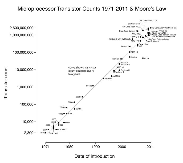 Wzrost liczby tranzystorów w procesorach firmy Intel w latach 1971-2011